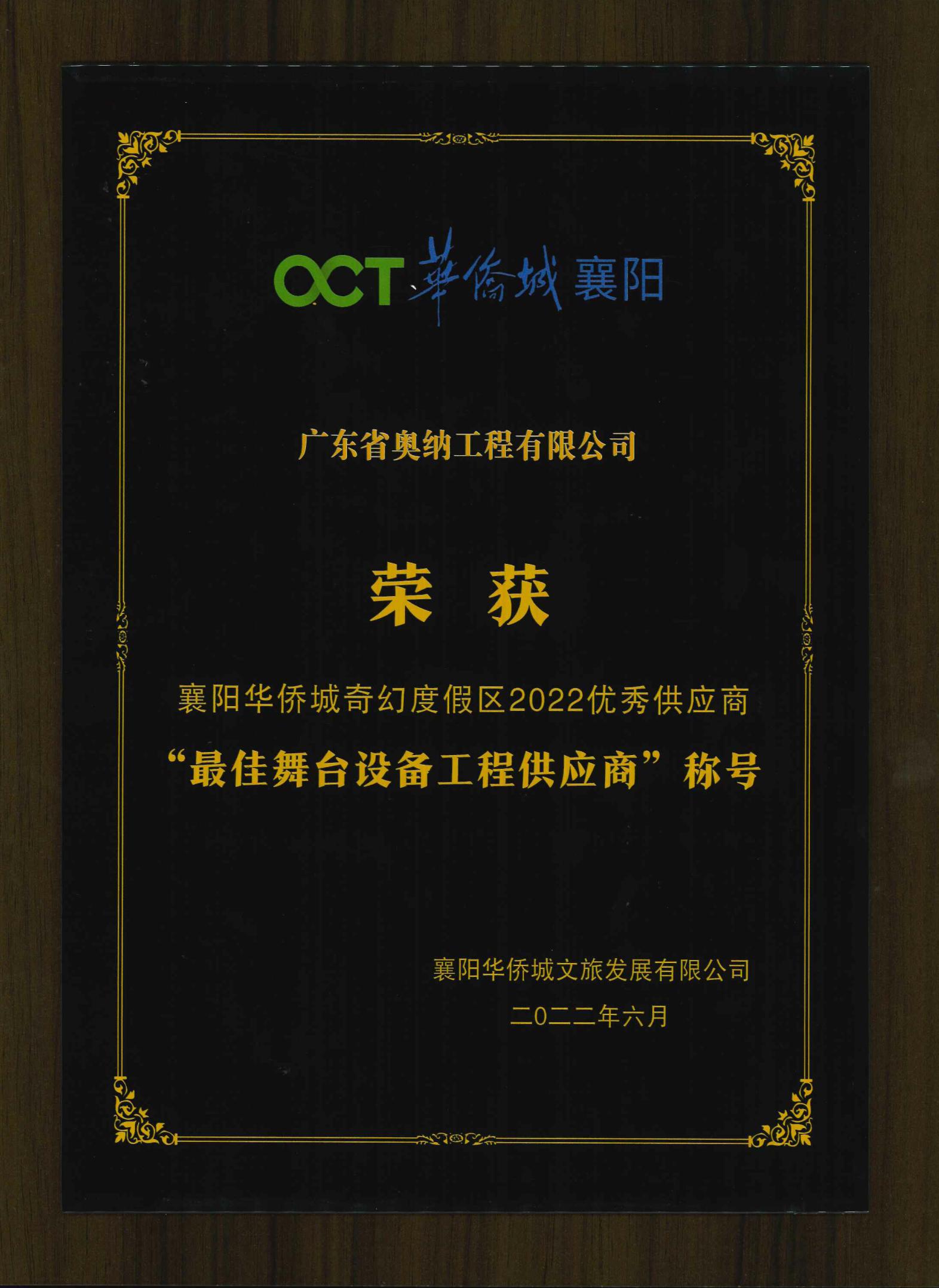 襄陽華僑城奇幻度假區(qū)2022優(yōu)秀供應(yīng)商“最佳舞臺設(shè)備工程供應(yīng)商”