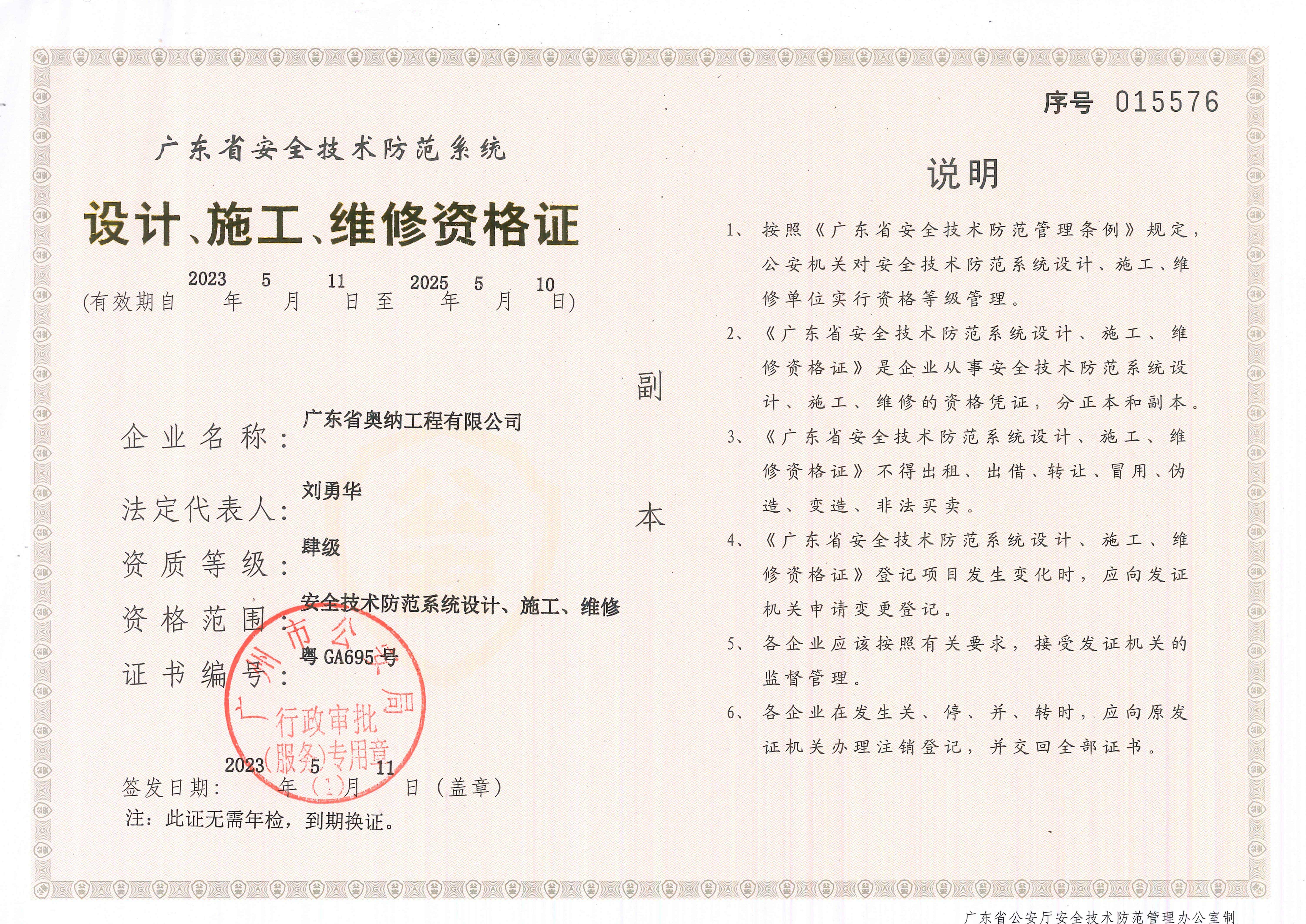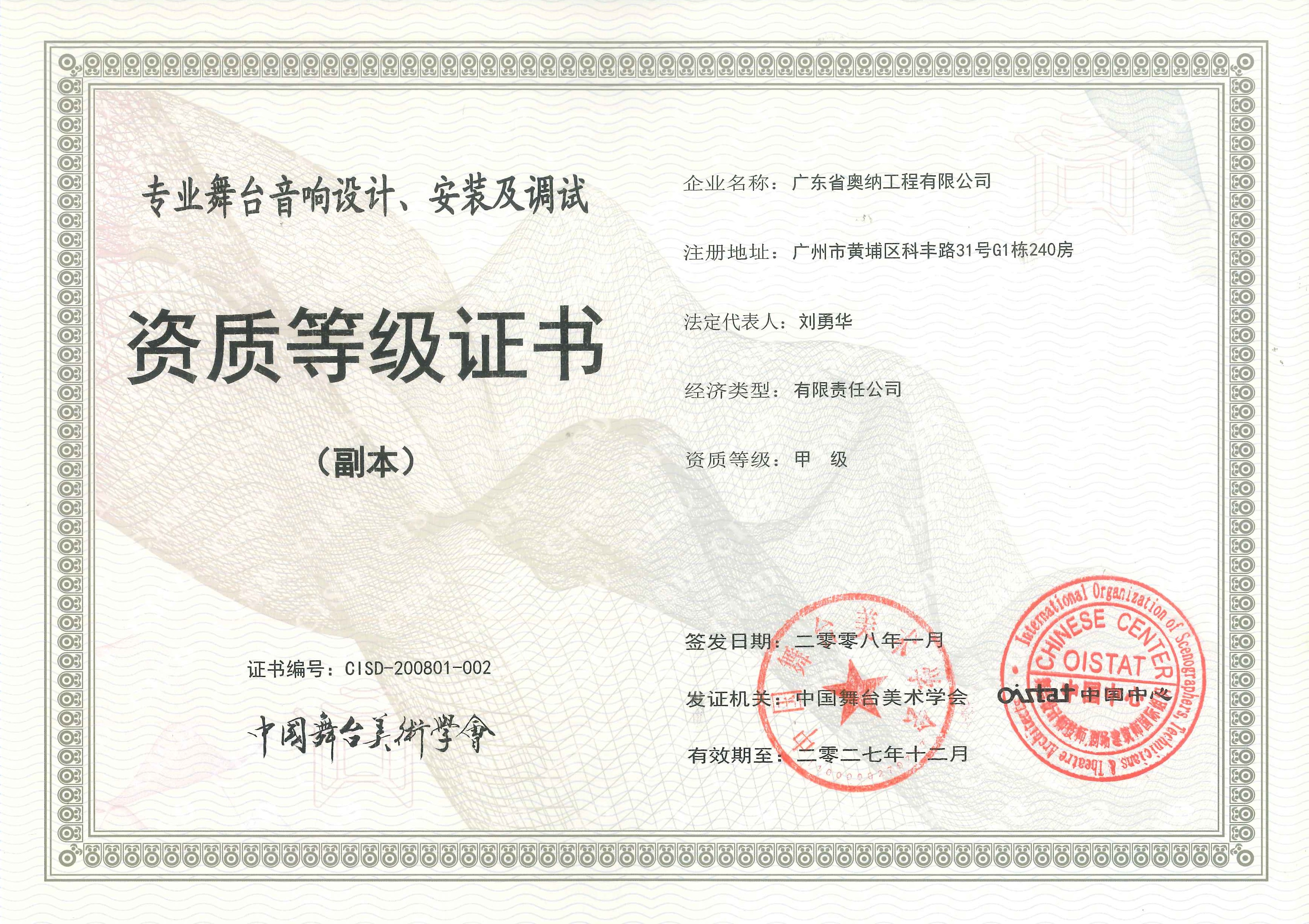 專業(yè)舞臺音響設(shè)計、安裝及調(diào)試甲級證書