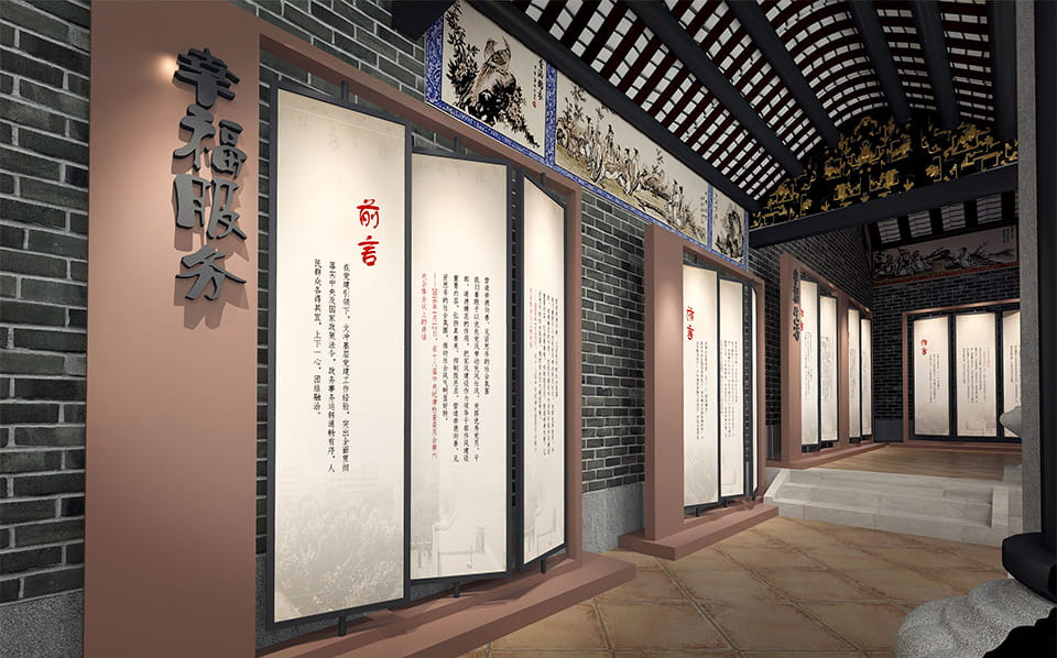 項目簡介:幸福之源黨風家風館從黨風家風促黨建出發(fā),活用古祠堂及周邊公共空間,融合紅色文化水舞秀表演和新時代文明實踐站功能,提煉政通、文昌、城美、業(yè)興、民樂五大主題,全方位呈現(xiàn)文沖人民群眾幸福生活場景。