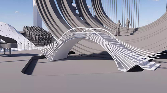 橋尾設計成展翅高飛的樣子,預示著更美好的未來,橋身柔和彎曲,倒映在水中合并成一個圓,象征著事成圓滿之意。灣升明月,在這人間銀河,架起一座橋,愿伴飛橋跨晴空,奮擊揚帆創(chuàng)新篇。