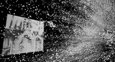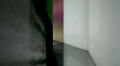 整個空間里最超脫的體驗來自一個黑暗空間內(nèi)從物理裝置到抽象粒子的穿越。耳機是“How to Disappear Completely”(如何徹底消失)緩慢而悲傷的曲調(diào),眼前是一切的消散與時間的逝去。
