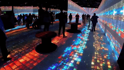 多感官、較高強度的綜合體驗:沉浸式數(shù)字藝術空間具有特制的大型畫面以及立體聲效,圍繞主題設計互動方式,將內容融入互動中,強烈的氛圍代入感使觀眾進入空間即能沉浸其中,達到身臨其境的效果。