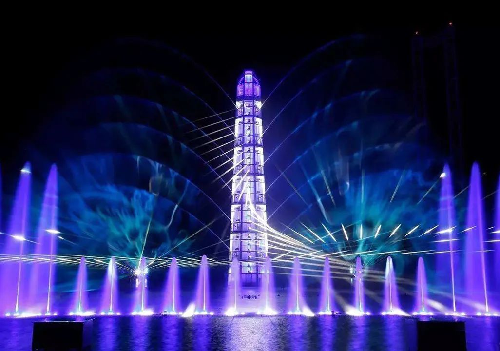 水秀的多種形式,從音樂噴泉、數(shù)碼水簾到水幕表演、水秀特效等,在景區(qū)夜游中的運用現(xiàn)已十分成熟。而如何真正達到“白天一景,晚上一秀”的視覺感官盛宴,不妨借鑒歡樂谷《天幕水極》日夜聯(lián)動的水秀案例。