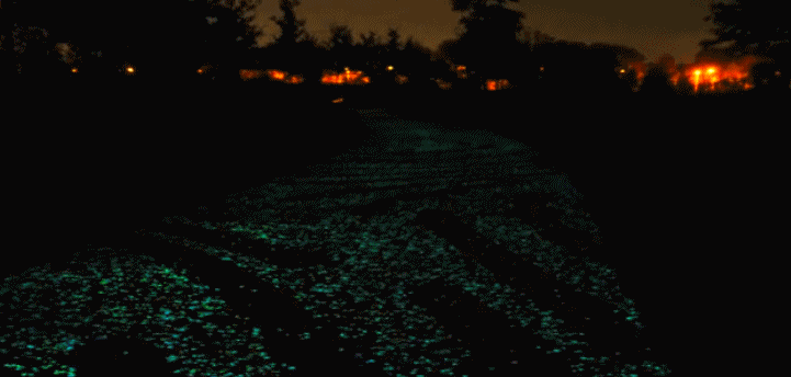 上千枚發(fā)光的鵝卵石和LED燈蔓延在一公里的自行車道上,他們通過白天太陽光的照射充電,夜晚繪就一幅“星空藍圖”。