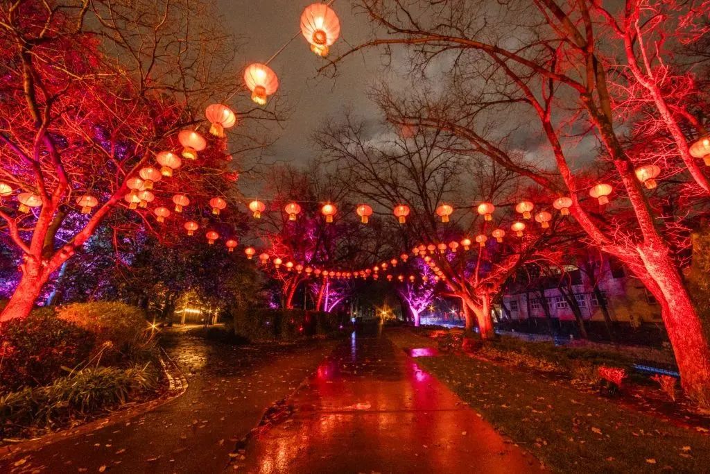 公園利用這些郁金香,輔以現(xiàn)代化的手段,使它們綻放出別樣明亮、富于變化的色彩。光影下的郁金香,明麗繁盛,獨(dú)具現(xiàn)代感。這里還有珍貴的可追溯到19世紀(jì)的樹木,在夜色中婀娜婆娑地講述過去的故事。