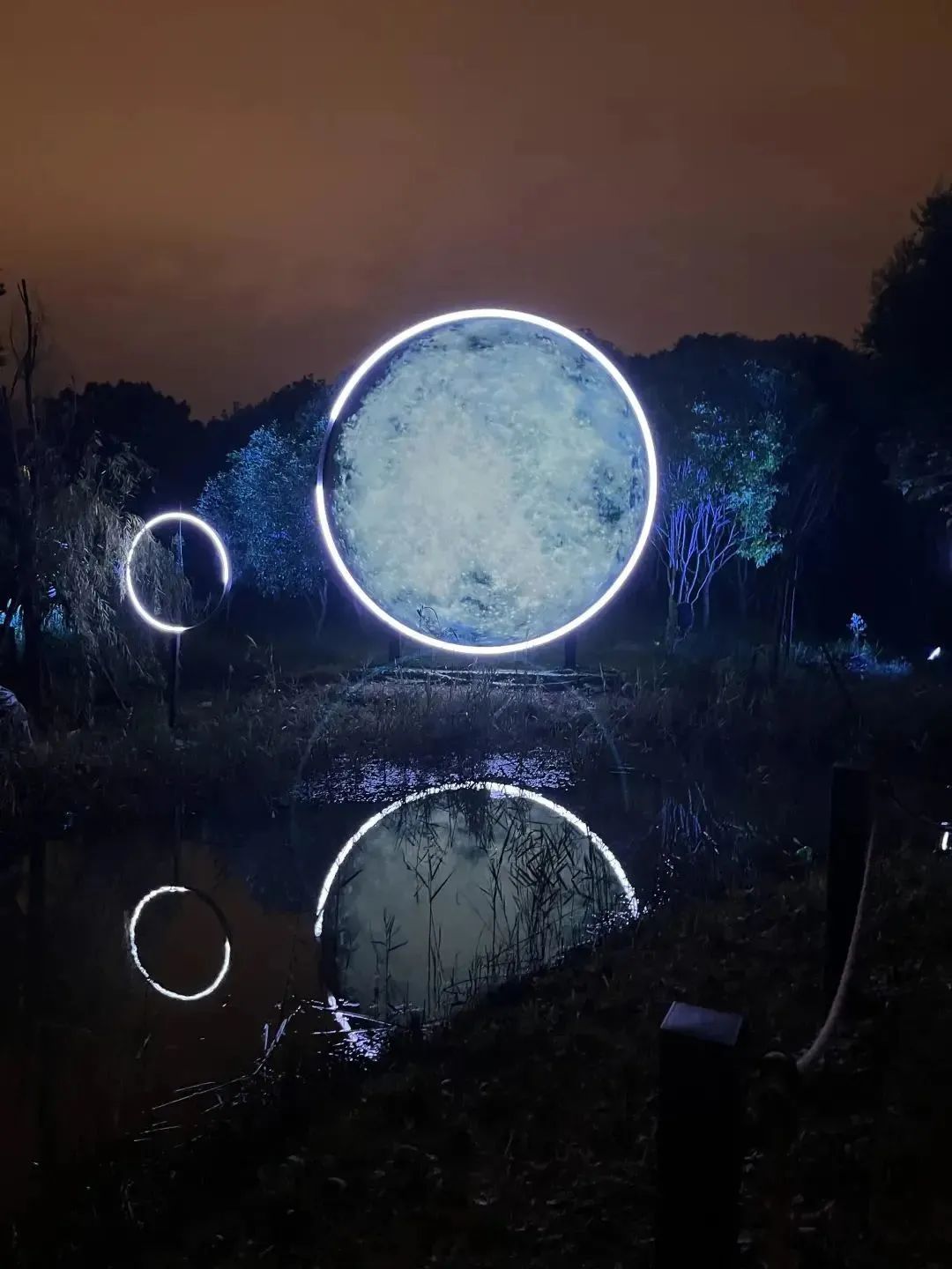 項目包含“幻月漪水”“華林若木”“幽眸噬火”“隱寺溯金”“玉蘭耀土”五大主題場景,分別象征“水、木、火、金、土”五大原生能量元素,同時融入了玉蘭花、滾燈、“賢文化”等本土文化元素,將夜幕籠罩下的森林公園化身為“旭林秘境”,讓游客在太陽守護使者“芒”的引領(lǐng)之下,開啟一場驚心動魄的尋光奇旅。