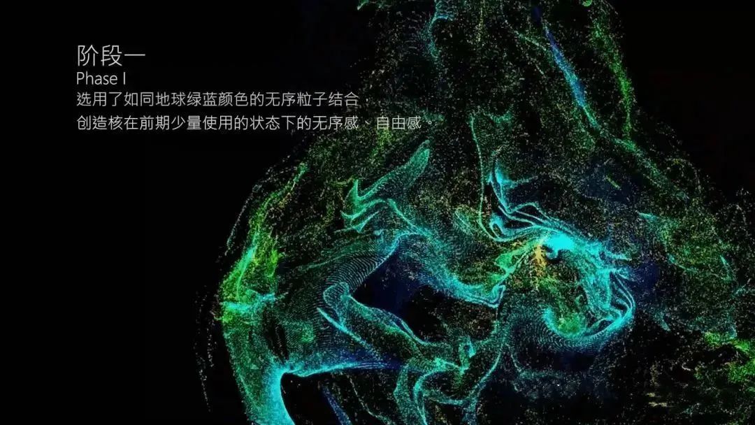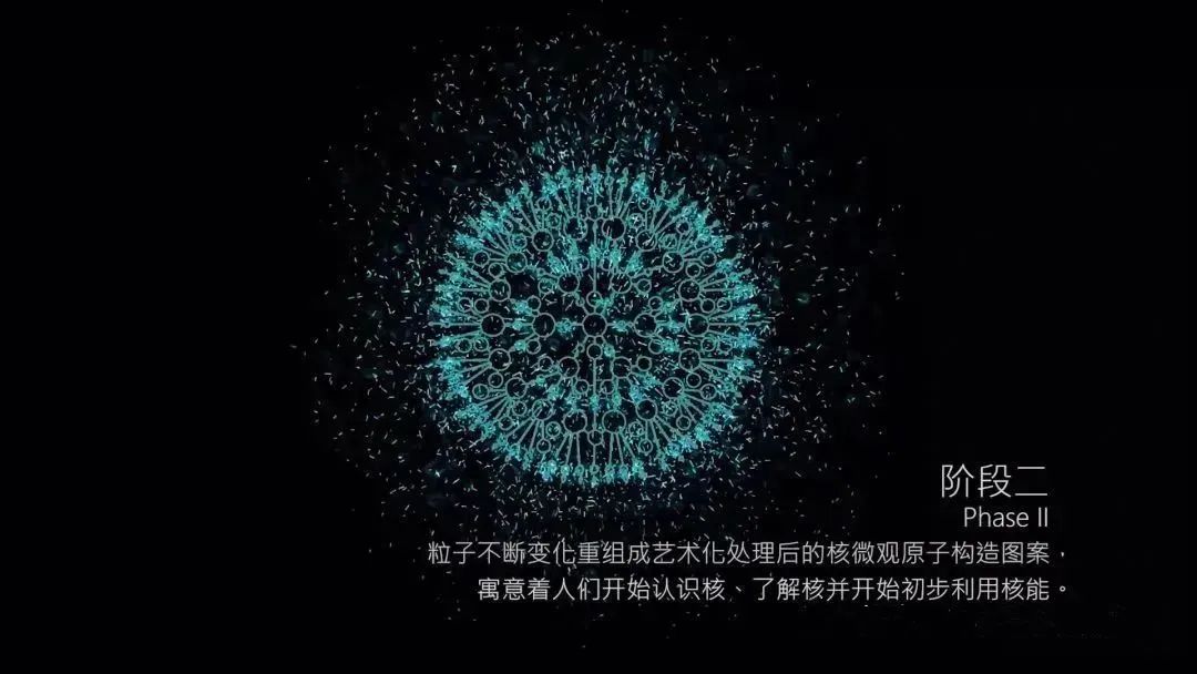 來自廣州美術學院的創(chuàng)作團隊創(chuàng)作了互動投影“核花”,靈感來自鈾原子外的電子排列。