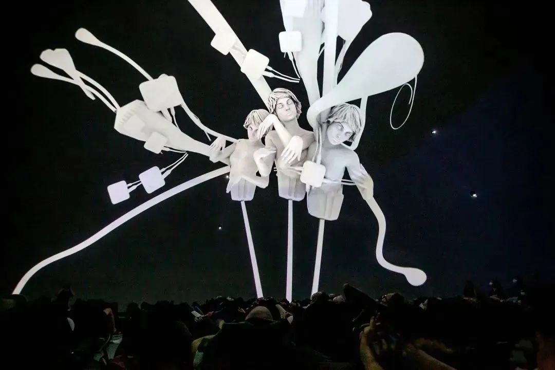 “異世界”是一個沉浸式的穹頂視聽演出項目,通過數(shù)字影像營造了一個機械和生物結合的花園。主題是人類與重新發(fā)現(xiàn)的自然狀態(tài)之間的潛在共生關系。它探索了我們人類如何與突變的自然、植物所形成的環(huán)境或非人類生命產生共鳴的問題。該作品旨在尋找非人類和超自然的生物敏感性,解決氣候變化和物種滅絕的關鍵問題,同時為觀眾提供身臨其境的沉浸體驗。