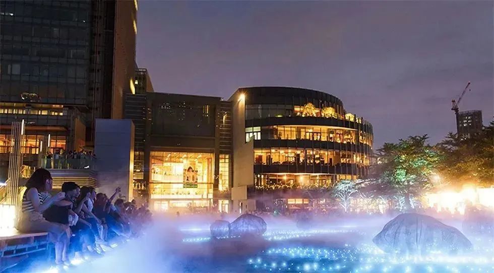色彩和圖案不斷在庭院中變換,還有那從白天持續(xù)到夜晚的霧氣朦朧,讓整個(gè)空間如夢(mèng)如幻。