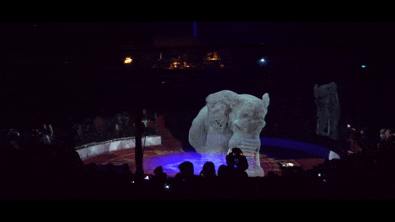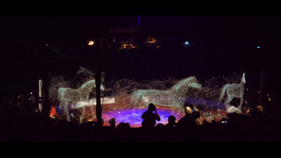 全息馬戲團表演使用11臺投影儀,遠距離激光和鏡頭來策略性地規(guī)劃馬戲團的表演。為了實現(xiàn)全息圖的完美渲染和照明,在設(shè)置中使用了高對比度投影儀。節(jié)目中有小丑和空中飛人,伴隨著美妙的全息影像,被認為是世界上最大的燈光秀之一。