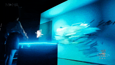 而立方空間里面的生命物資其實就是暗盒子里的“薛定諤的貓”,只有在體驗者觸控到立方盒子的瞬間,整個環(huán)境的燈光都被改變,而盒子里的“貓”(空間里的生命物資)也才會得到啟動,因此而存在。“我思故我在!”的創(chuàng)新顯示方案,延伸二維平面到三維空間,并以全面影像覆蓋整個空間,包裹式的畫面場景讓觀眾彷佛置身于真假難辨的場景之中,帶來置身空間之外的多感官享受,展現(xiàn)了文化與科技融合的魅力。