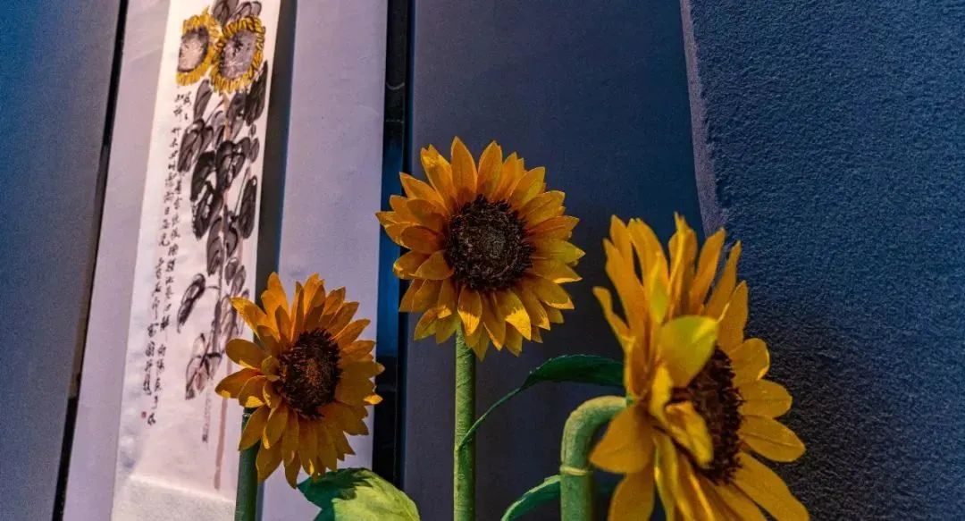 第三個單元名為“一花一世界”,是整個展覽的核心展區(qū),創(chuàng)作團隊在空間構成中運用折角造型,寓意齊白石一生的曲折與堅強。在這里觀眾們可以沉浸在白石老人的花鳥作品之中,真切的體會一代大師對生活的細微觀察及繪畫背后的人生見解,與大師產(chǎn)生共鳴與欽佩之情。