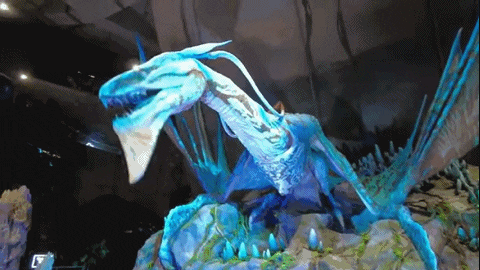 觀眾被邀請來到潘多拉星球,探索一個史詩般的故事。他們會遇到運動中的全尺寸母女妖,與小女妖和Viperwolf幼崽的實現(xiàn)近距離互動。 當觀眾伸手敲擊前方的植物,這些植物會發(fā)光,好像帶著觀眾重溫電影經(jīng)典畫面。順著蜿蜒的藤蔓,觀眾想起電影中能與靈魂連結(jié)的圣母樹,萬物互聯(lián),心意相通。