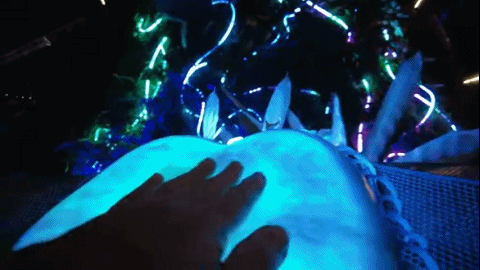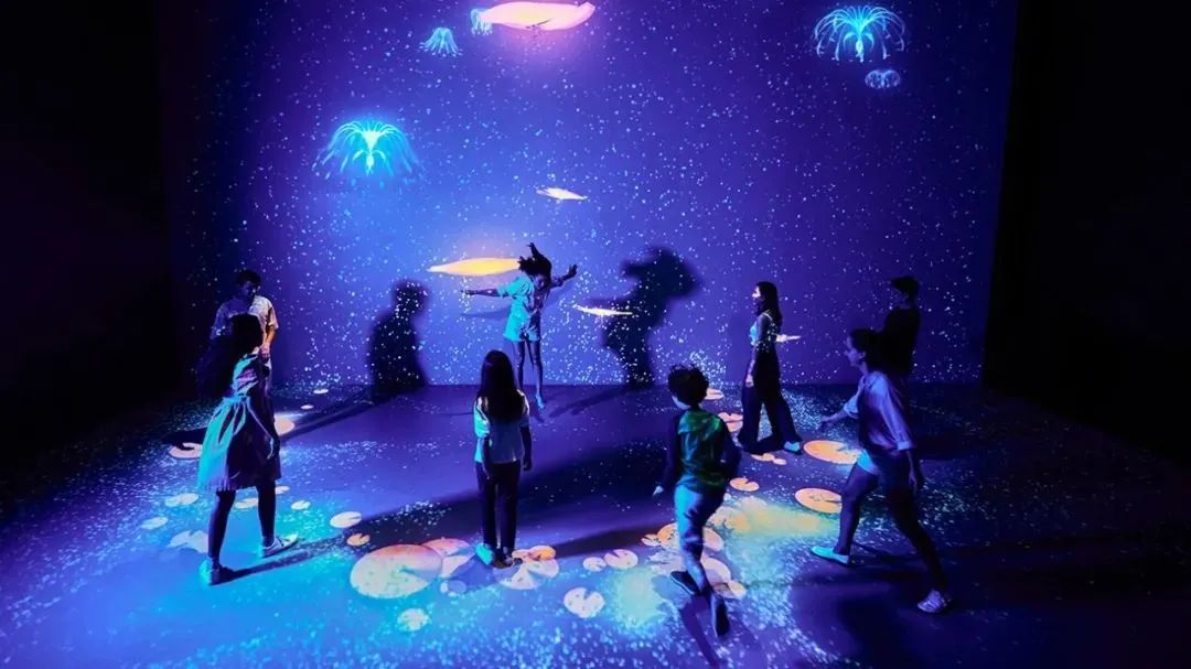 另外,互動感十足的體驗設(shè)施,讓觀眾在音樂與燈光的烘托下盡情舞蹈。隨著墻面生成的光點與火焰,通過AR技術(shù),觀眾仿佛騎上斑溪獸在阿凡達的山谷中翱翔俯沖。