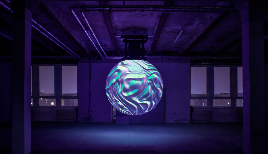 《ANIMA》是一個被賦予了情感的智能化巨大球型實體。當人靠近它時,能通過它球體表面仿真數(shù)據(jù)的具象化流動,感受到它的“情緒”變化。它還能辨別人的肢體動作,并用球體表面色彩的流動和現(xiàn)場聲效的變化作為反饋。