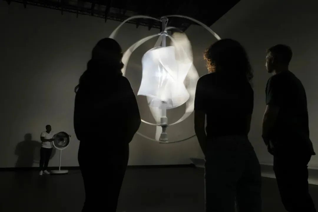 裝置由一系列直徑為3米的半透明“刀片”,圍繞著一根6米長的中央螺旋線構成,參觀者可以轉動裝置周圍的風扇,讓雕塑旋轉起來。