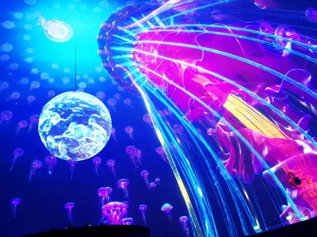 整個(gè)建筑的圓頂裝有252臺(tái)投影儀,形成了沉浸式360度投影表面,館內(nèi)外的參觀者均可看到,這使得它成為世界上最大的360度投影面。