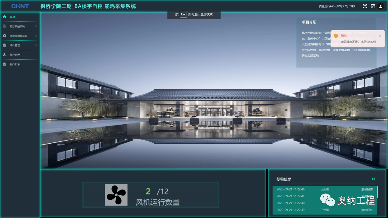 奧納工程通過自主研發(fā)綜合管控平臺(tái),將本項(xiàng)目擴(kuò)建前和擴(kuò)建后的系統(tǒng)集成接入,新舊系統(tǒng)集中管控、統(tǒng)一指揮和協(xié)調(diào)聯(lián)動(dòng),進(jìn)行可視化管理和一鍵式觸控機(jī)制,方便快速管理整個(gè)項(xiàng)目系統(tǒng)的狀態(tài)及功能,為管理部門提供多維分析和決策支持,實(shí)現(xiàn)了有序的高效協(xié)同工作,增強(qiáng)系統(tǒng)運(yùn)行的穩(wěn)定性和操作的準(zhǔn)確性,降低運(yùn)維管理風(fēng)險(xiǎn)。